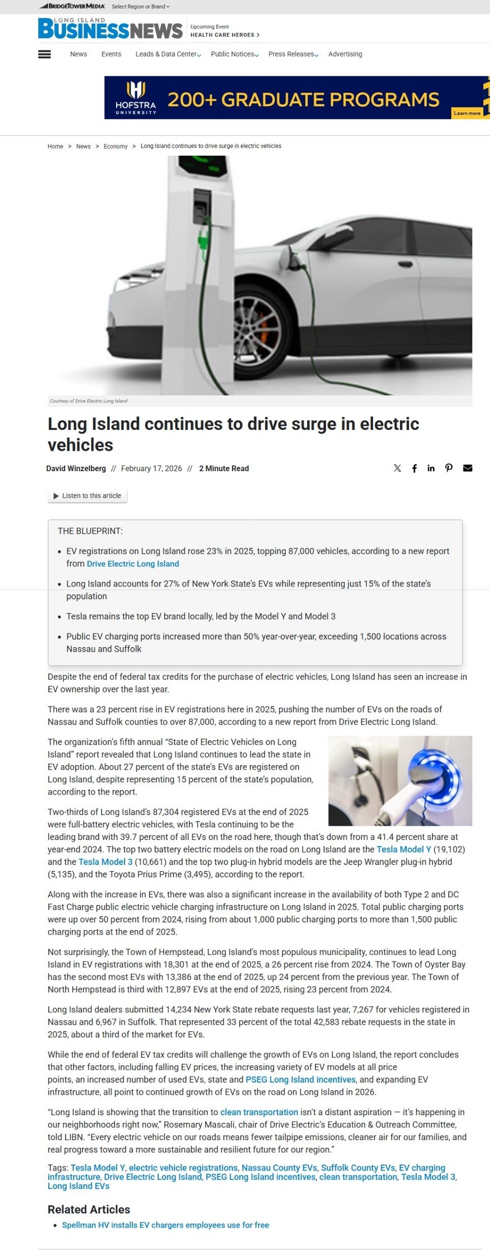 Despite the end of federal tax credits for the purchase of electric vehicles, Long Island has seen an increase in EV ownership over the last year.